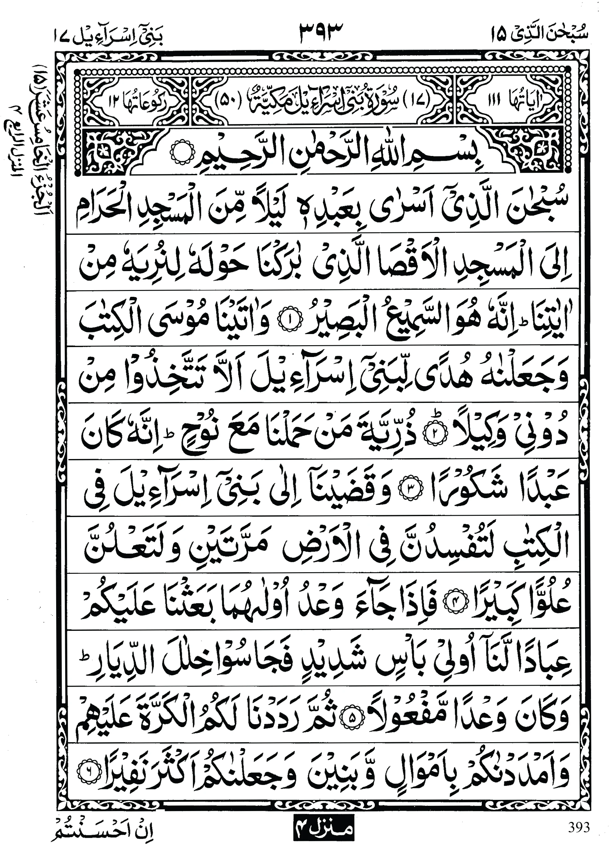 Quran Para 15 (Subhanallahzi)15th Para Recite Online and PDF